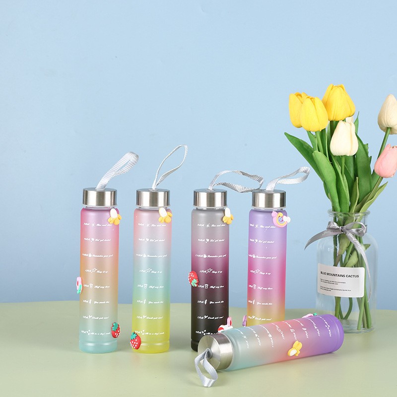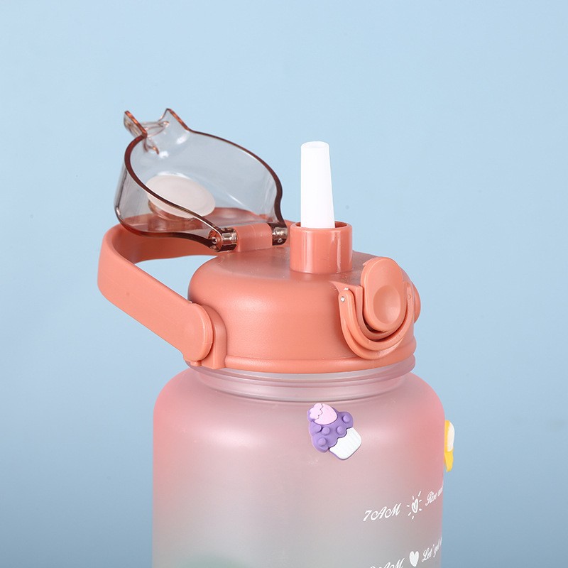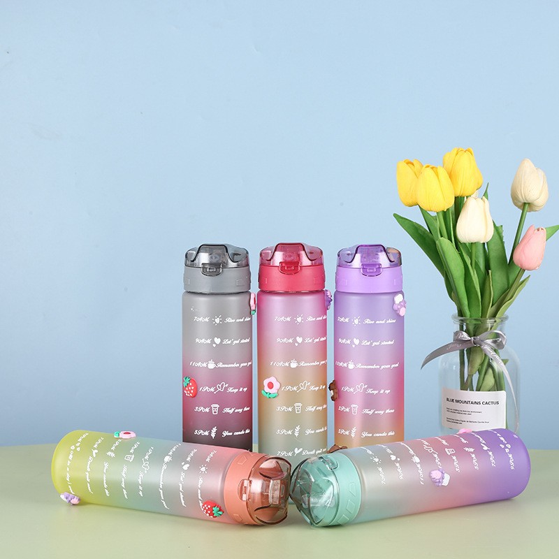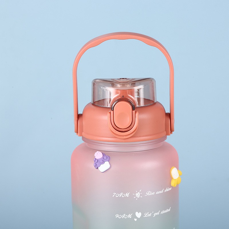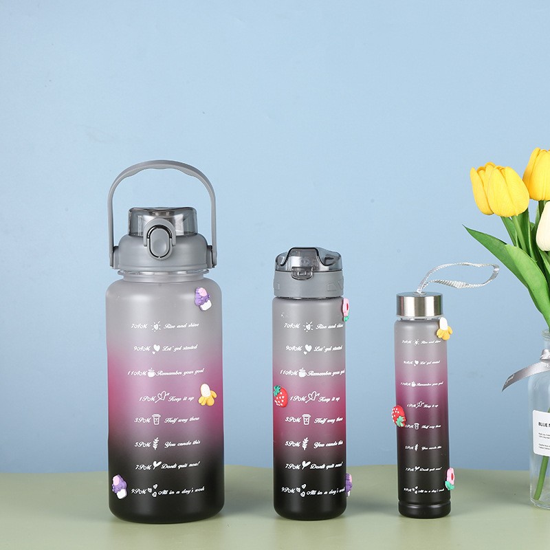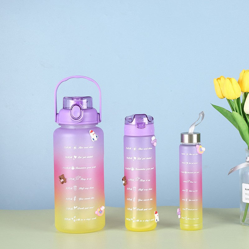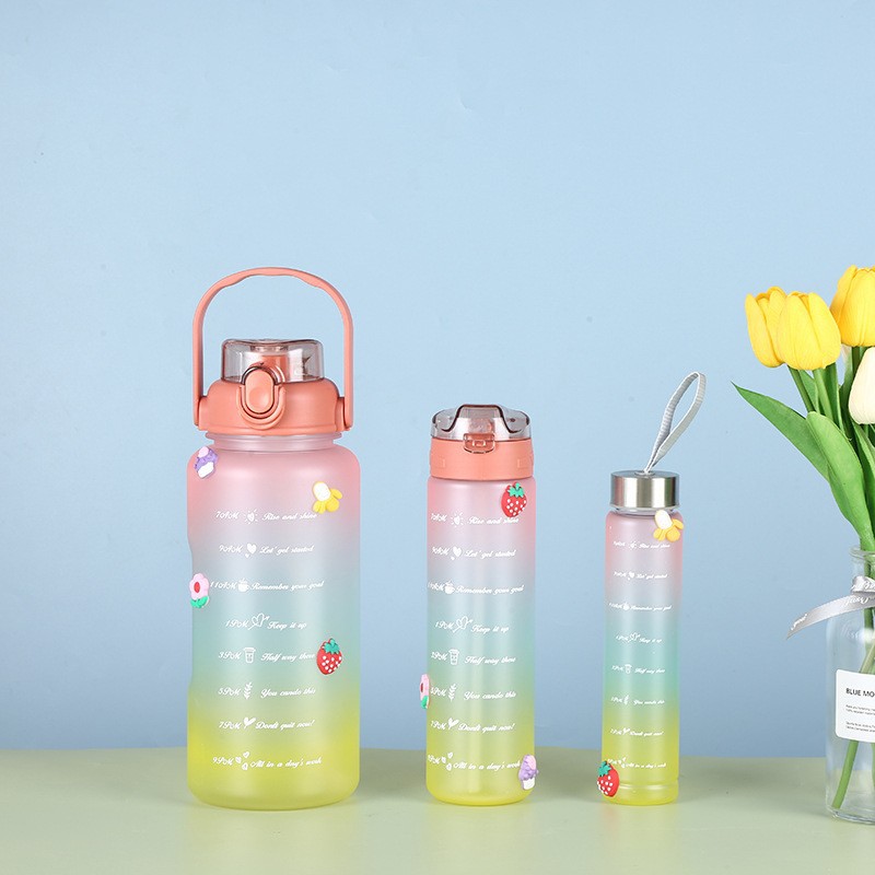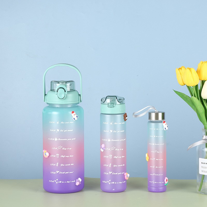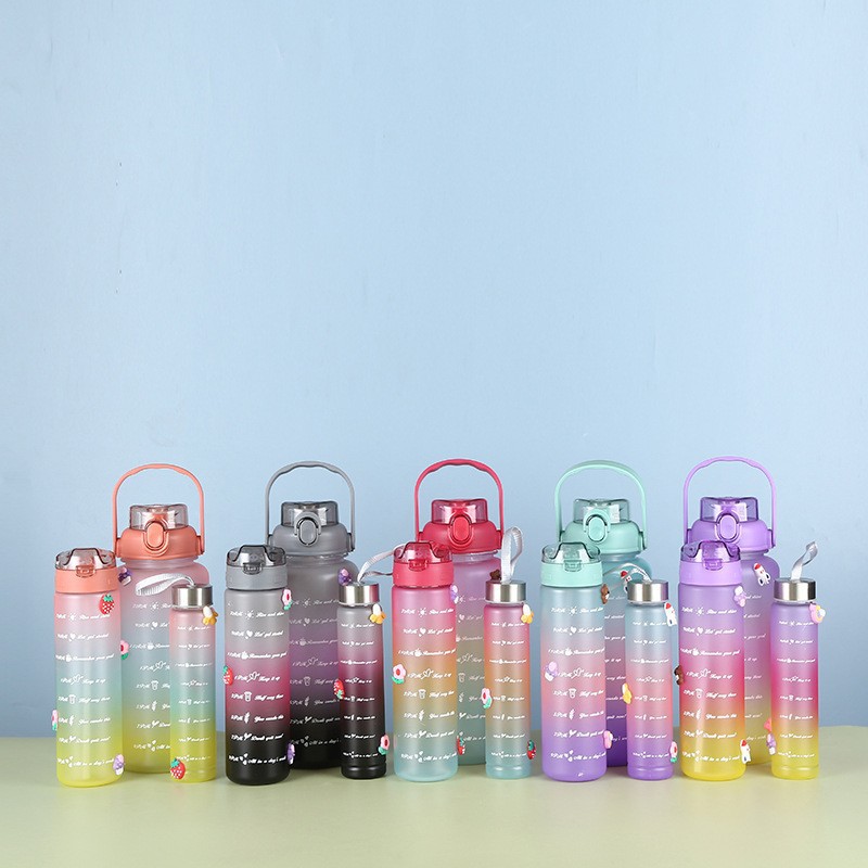 Cross-Border Gradual Change Three Sets Of Plastic Cups Large Capacity Outdoor Sports Kettle Portable Straw Cup Frosted Water Cup Wholesale