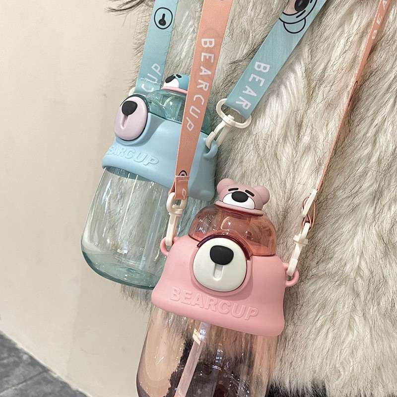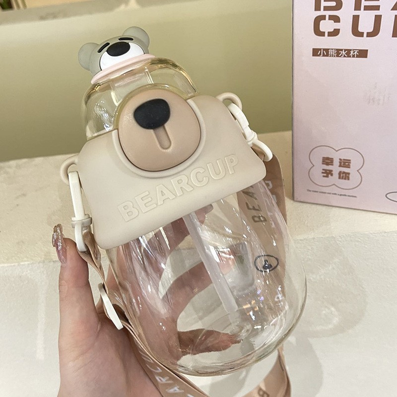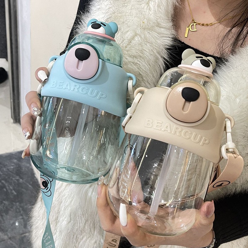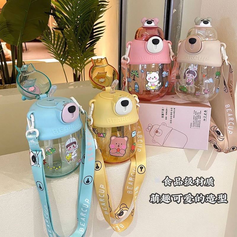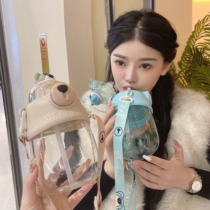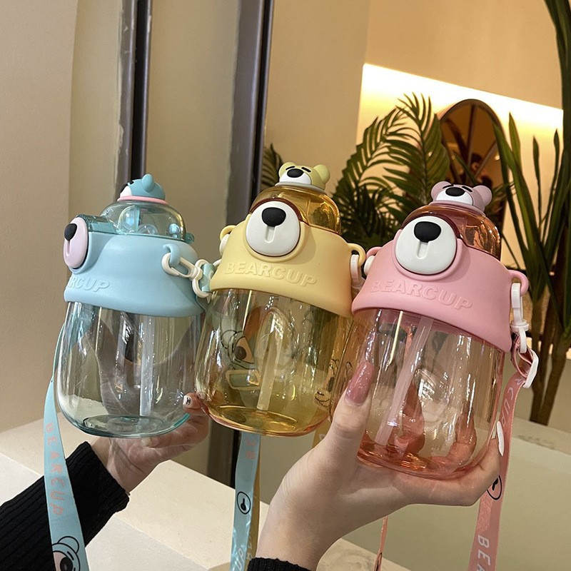 Netred Doudun Dun Bear Straw Cup Cute Cartoon Cute Bear Pot Belly Cup Students And Children Summer Plastic Cup Wholesale