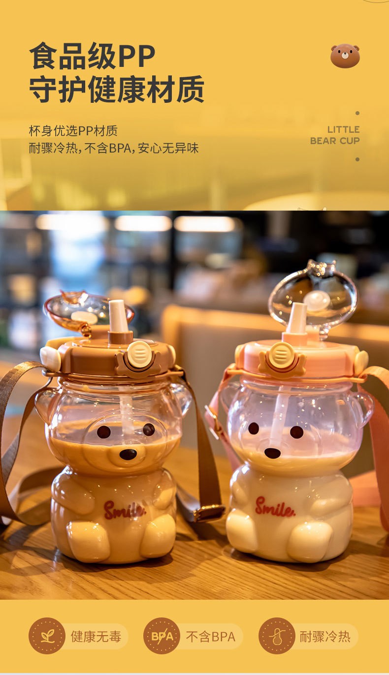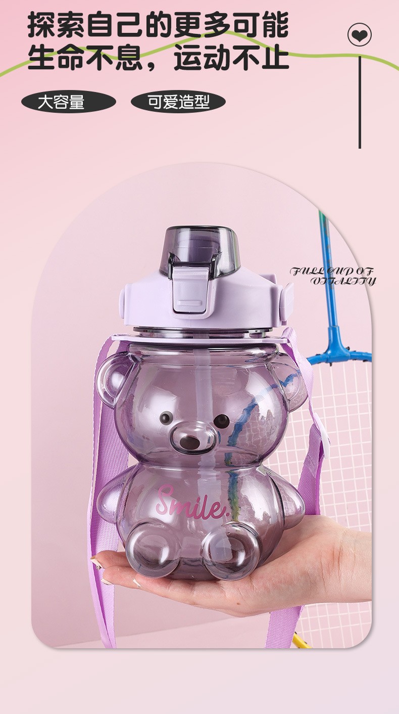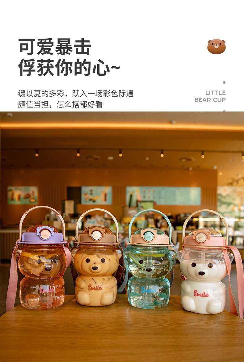 Outdoor Portable Children's 2-Piece Set Bear Transparent Cup Large Capacity With Big Belly Cup Bouncing Straw Cup